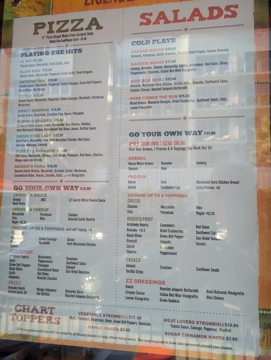 artichoke hearts, green bell peppers, basil, roasted red peppers, garlic, jalapeños, mushrooms, black olives, caramelized onion, red onion, pepperoncini, pineapple, tomatoes, southwest salsa, spinach, sun-dried tomatoes, roasted zucchini